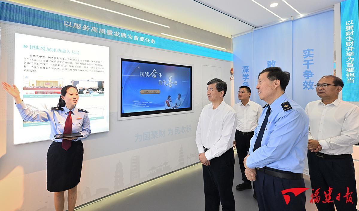 周祖翼走进福州市台江区税务局办税服务厅,详细察看了“高效办成一件事”税务特色项目、征纳互动服务在线窗口、“税悦工作室”等,询问纳税服务、对接政务服务、融入基层治理等工作情况。在省税务局,周祖翼一行回顾了福建税收事业发展历程,察看了“智慧税务”大数据中心和有关处室,认真了解税务数字化转型、政策咨询,以税资政助力经济社会高质量发展等情况。周祖翼希望大家用好税费数据,精准研判经济运行态势,着力加强对收入结构、产业结构等深层次问题的分析研究,提出更多有价值的参谋建议,更好地服务省委、省政府科学决策。