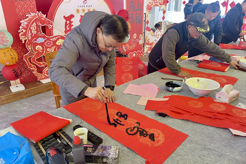 Artists are invited to write Spring Festival couplets for local residents.[Photo by Yang Feiyue/China Daily]