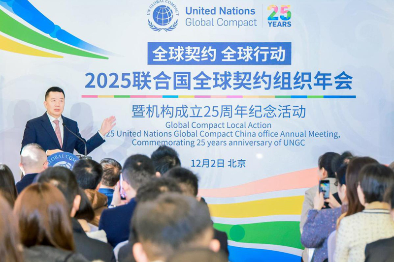 The 2025 United Nations Global Compact China Office Annual Meeting and 25-Year Anniversary Celebration of UNGC were held on Dec 2 in Beijing. Zhao Dong, chairman of Xiamen Airlines and a UNGC board member, delivered a keynote speech at the event.