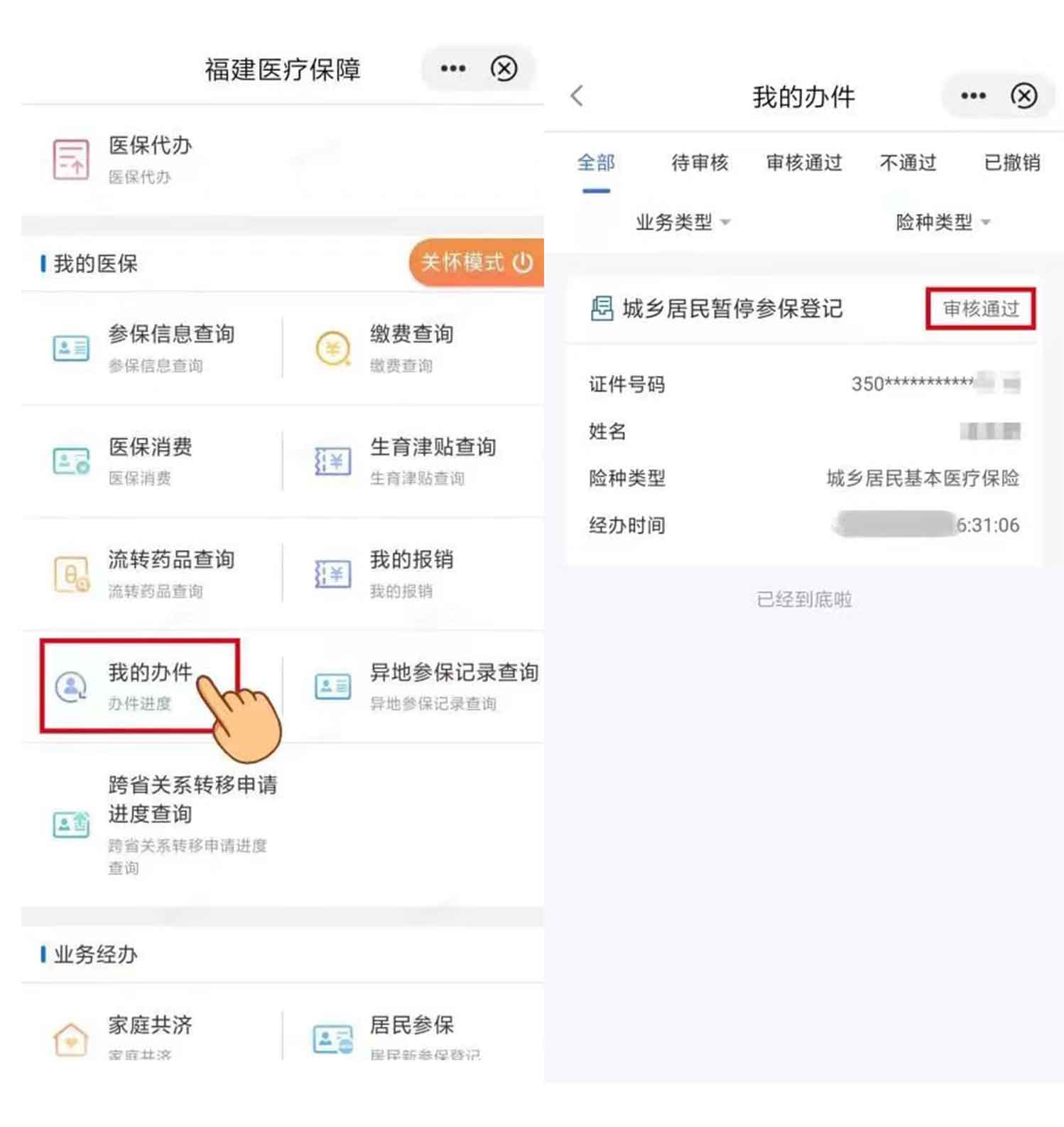 参保人可通过闽政通APP、"福建医疗保障”小程序线上办理居民医保暂停参保业务,也可通过参保地医保经办机构办理。