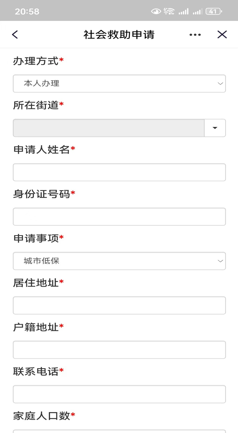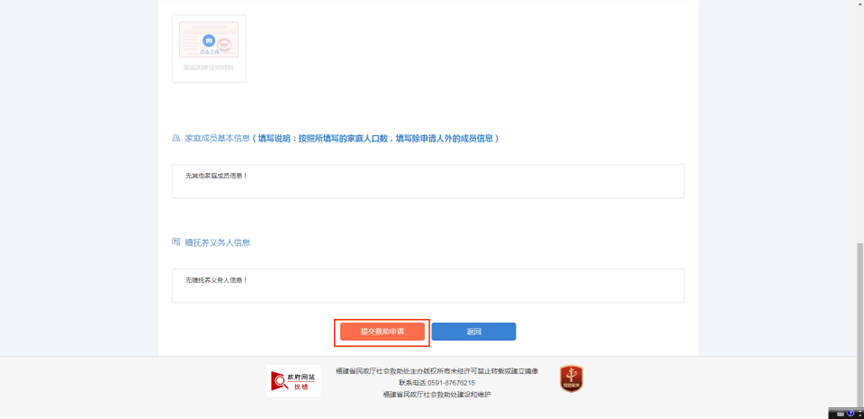 5.按照要求填写“红*”内容,上传电子版授权书、承诺书、清晰的身份证正反面或户口簿照片,最后点击“提交救助申请”。