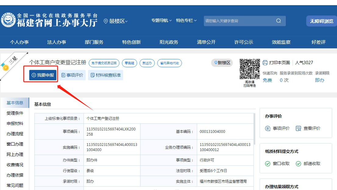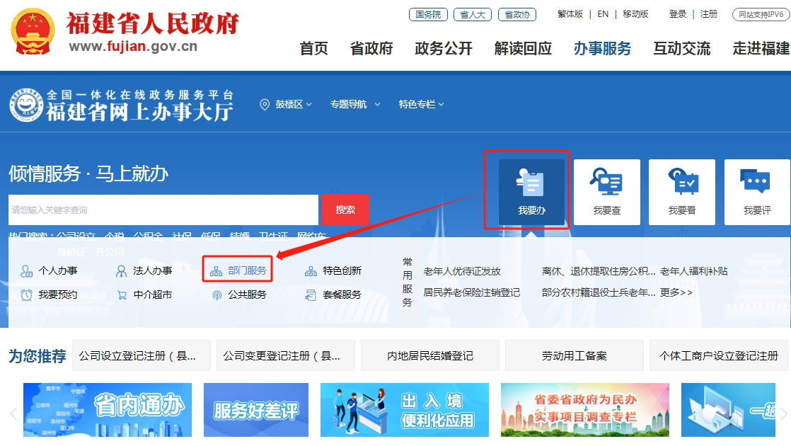1.登录“福建省网上办事大厅”,定位到福州市鼓楼区,如下图所示: