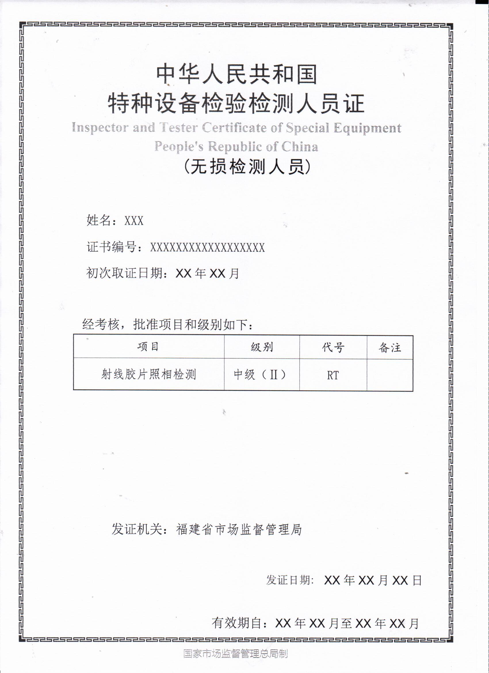 《中华人民共和国特种设备检验检测人员证(无损检测人员)》
