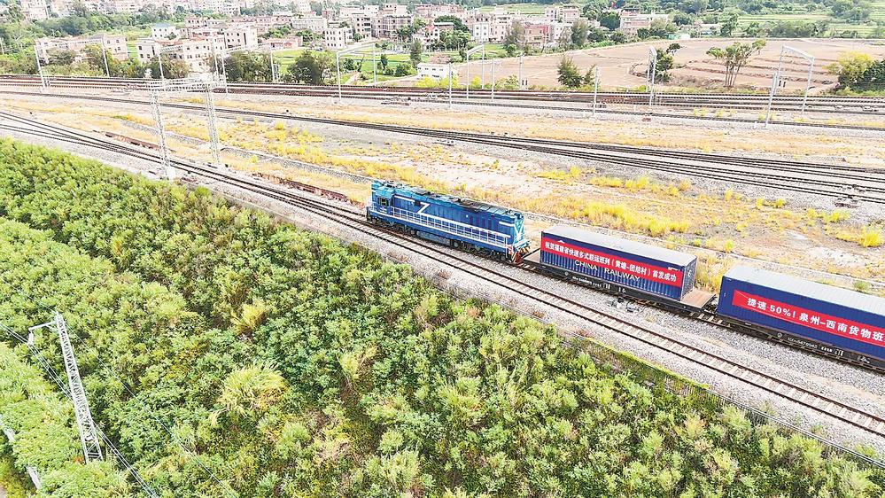 南铁福州铁路物流中心生产调度中心副主任方杰介绍,该快速多式联运班列已纳入铁路运行图,按隔日开行模式实施常态化运输。“班列将成为连接泉州与西南地区的高效物流通道,对促进区域货物流通、提升物流组织效率具有重要意义。”(记者 张颖 通讯员 李翔 周敏)
