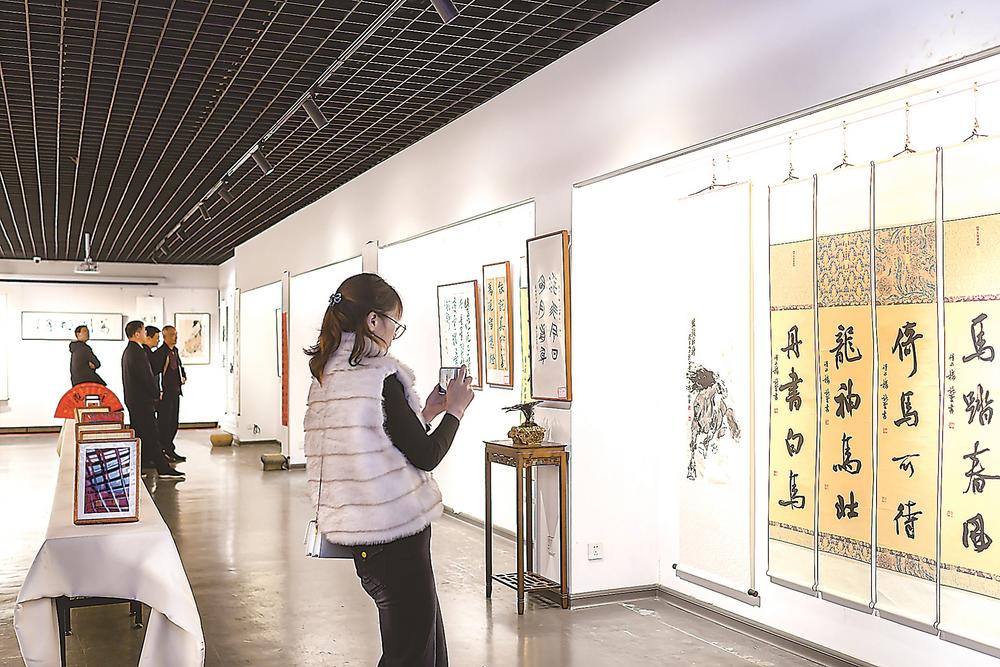 1日,“万川明月”七人书画展在福州市温泉公园闽都艺术馆开幕,展览将持续至3月31日,为市民献上一席雅致的文化盛宴。据了解,展览展出了来自省书法家协会的张再之、孙建国、施云、姜武寅、曾兴宗、陈亮和肖卫华等7名作者的书法、绘画作品近80幅,涵盖斗方、对联、扇面等多种形式,展现了艺术家们对艺术语言的探索和各自的美学理念。图为展览现场。(记者 施辰静 摄影报道)