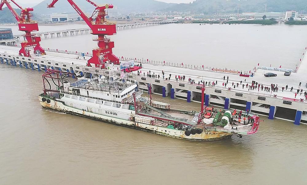 26日上午10时许,伴随着阵阵汽笛声,国际航行船舶“福远渔8731”号远洋渔船缓缓驶入福州(连江)国家远洋渔业基地核心区母港码头(上图)。据悉,这是该基地迎来的首艘国际远洋渔船,标志着基地完成一期建设阶段性目标,将为“海上福州”建设注入新动力。
