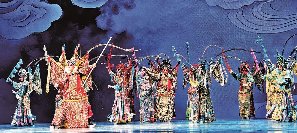 《武戏集锦》汇聚京剧经典武戏精粹,满场马鞭化作万马奔腾,寓示福天福地旗开得胜的盛年景象。