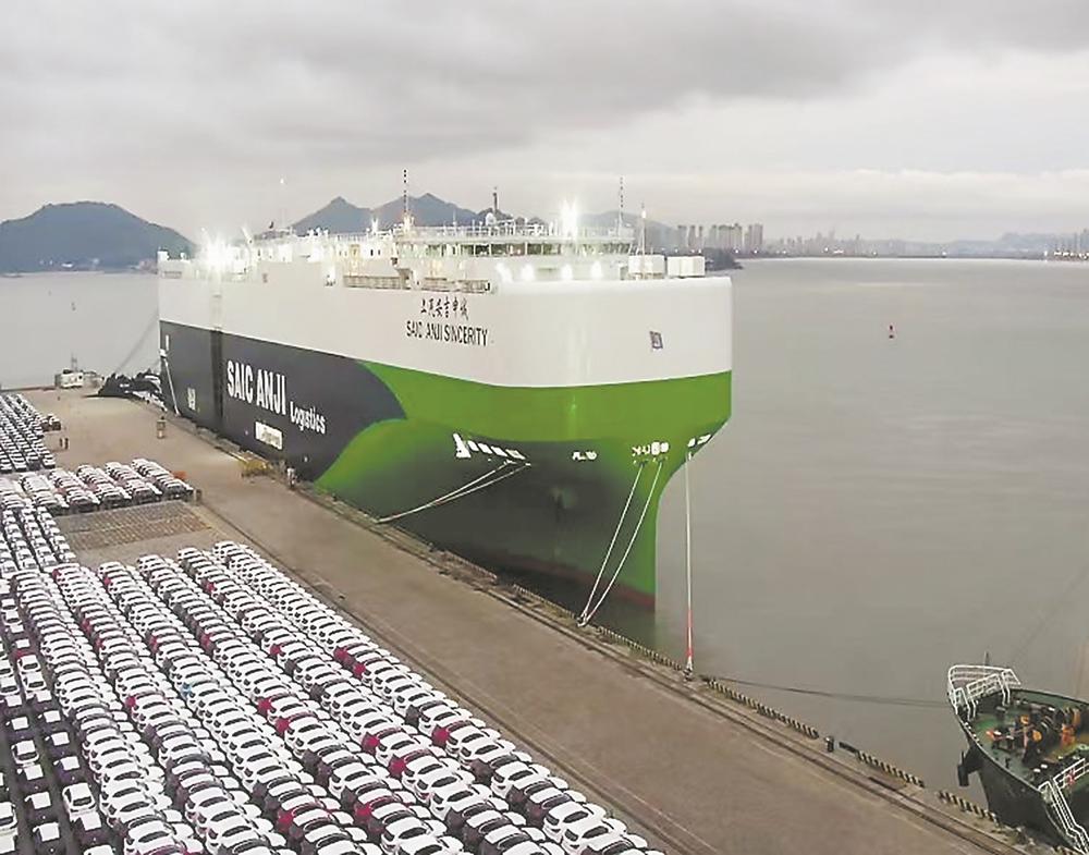 今年1月23日,在福建厦门东渡港区现代码头,3700余辆汽车陆续驶上“上汽安吉申诚”号汽车滚装船。船只1月24日从厦门港起航,驶向欧洲。这是厦门口岸单航次最大批量汽车出口。(廖丽萍 田圆 蒲韵如 摄)