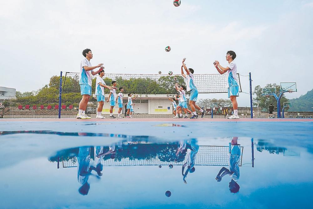 3月31日,泉州南安市金淘镇侨光中学,周末体育大课堂的学生们正在进行排球训练。近年来,作为我省体育特色传统学校的侨光中学,注重培育发展乒乓球、排球等传统体育项目,通过体育运动专业知识讲解与技能普及,丰富学生体育活动。同时,在每周末开设乒乓球、跳绳、篮球、羽毛球等公开运动课程,鼓励学生走进校园进行体育锻炼,促进乡村青少年茁壮成长。(谢贵明 摄影报道)