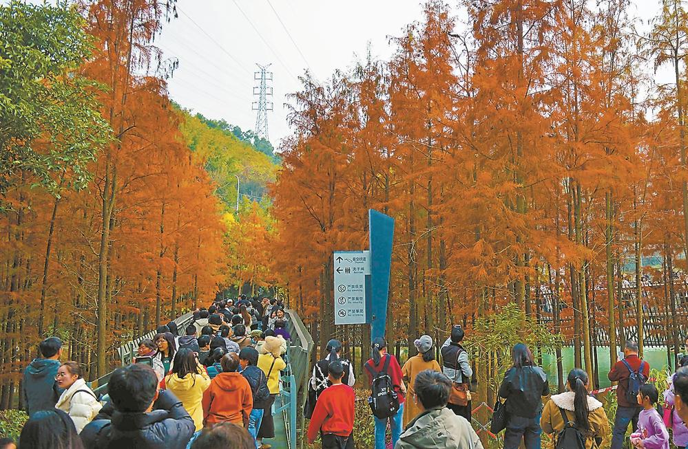 冬日,福道梅峰山地公园内的水杉林迎来了最佳观赏季。记者 游庆辉 摄
