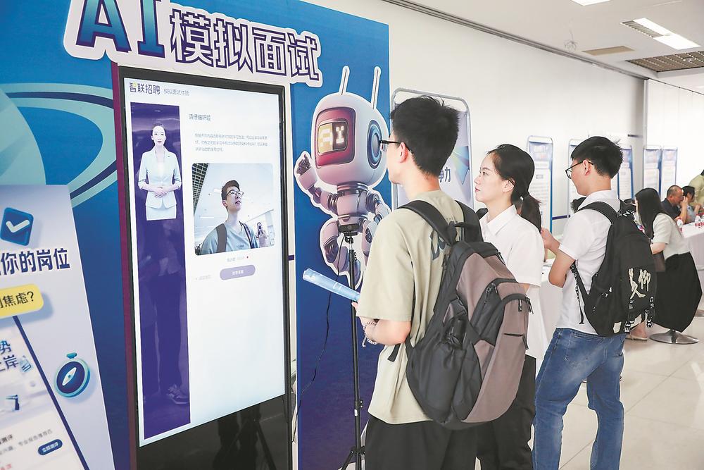 8月22日,厦门市企事业单位就业见习专场对接会举办,毕业生在AI模拟面试专区体验。(资料图片)