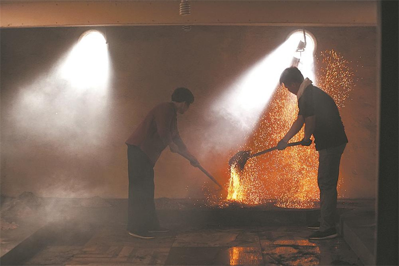 2018年8月,游玉琼(左)与方舟一起做茶,正在进行的是打焙步骤。