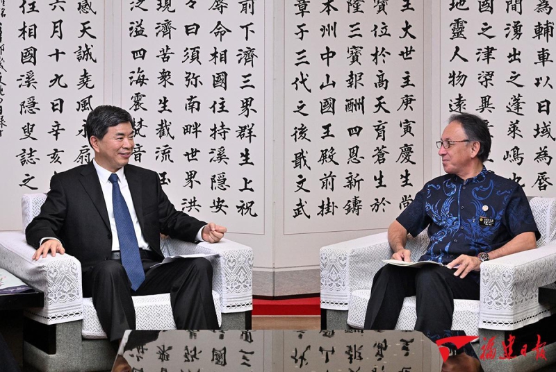 7月29日,省委书记、省人大常委会主任周祖翼率福建省代表团继续在日本访问。周祖翼先后与冲绳县知事玉城丹尼、议长中川京贵和前知事稻岭惠一,长崎县知事大石贤吾、议长德永达也和前知事金子原二郎、中村法道等进行交流,深入推动双方合作。代表团一行还出席了“一衣带水、共许花开”清新福建(长崎)文旅图片展等活动。(记者 周琳/文 肖春道/图)