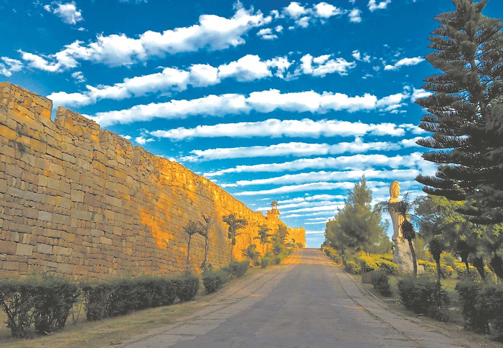 穿过低矮的水关门,便可见城墙上宽阔的走马道。走马道可容数人并行,便于士兵在城墙上转移。登上城墙,远眺城外,海天一色,景色蔚然;俯瞰城内,红砖大厝,古宅林立。