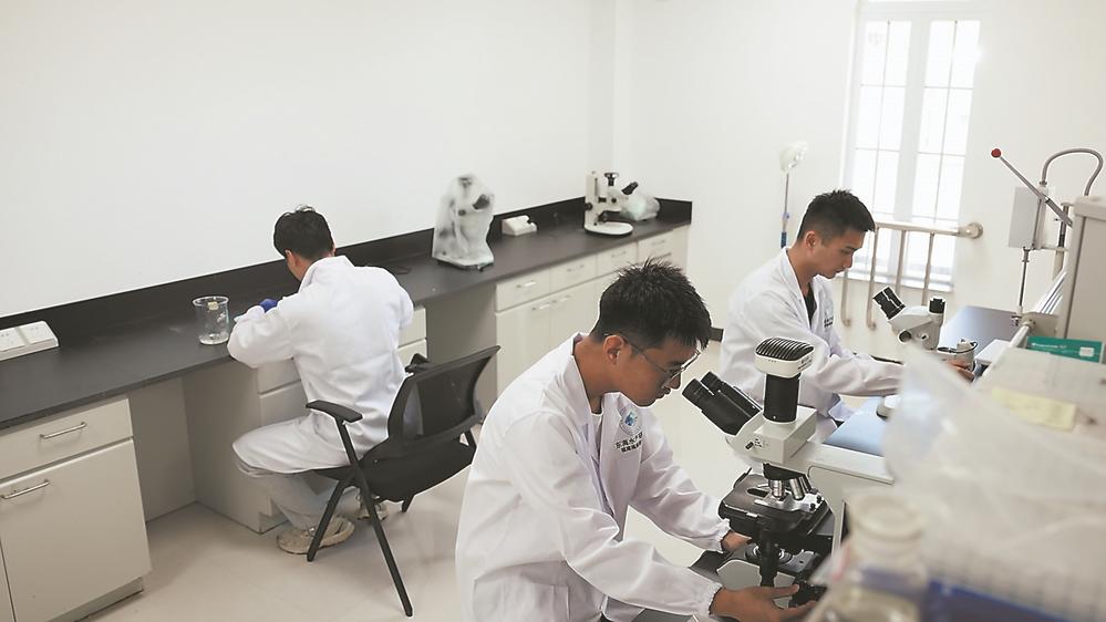 走进闽威实业长屿养殖基地实验室,研究生谢海生正在查看鲈鱼的组织切片分布情况,提前做好病害防控措施。据他介绍,鳗弧菌是鲈鱼养殖过程中病原菌之一,致病率在20%至30%。