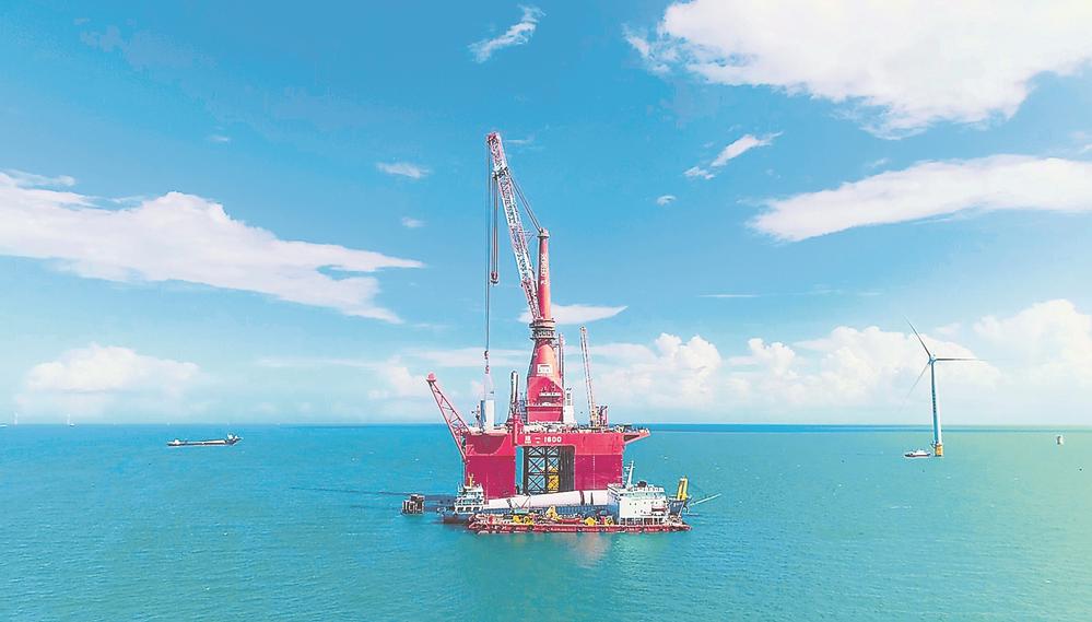 “顺一1600”在广东湛江外罗风场施工。(资料图片)
