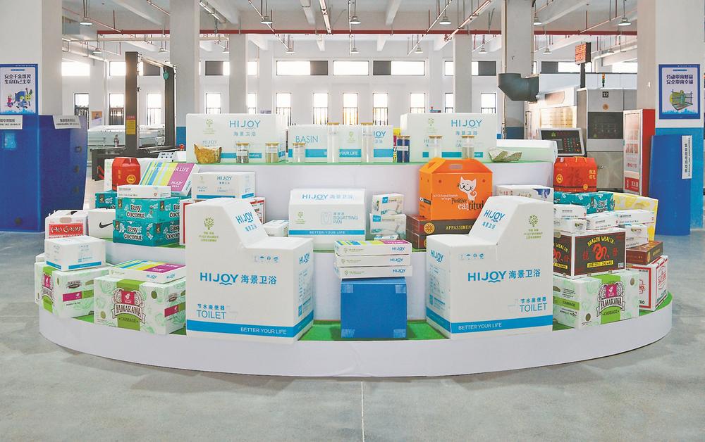 据介绍,该款产品已通过九牧集团旗下陶瓷工厂的测试。相较于传统瓦楞纸箱,石塑箱具有防水、防潮、耐磨、可定制等特性,在工业与重型机械零部件、医药与医疗用品包装以及出口与跨境物流等多个领域展现出替代传统包装的潜力。这种就近取材的模式,更大幅降低了企业物流成本,尤其适合南安另一大千亿产业——水暖卫浴产品的仓储运输,进一步形成“本地资源—绿色产品—产业配套”的闭环生态。