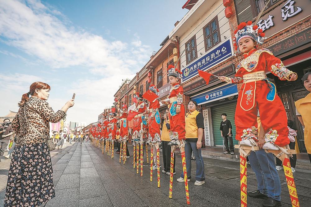芗城区级非遗石亭高跷走进漳州古城。郑文典 摄
