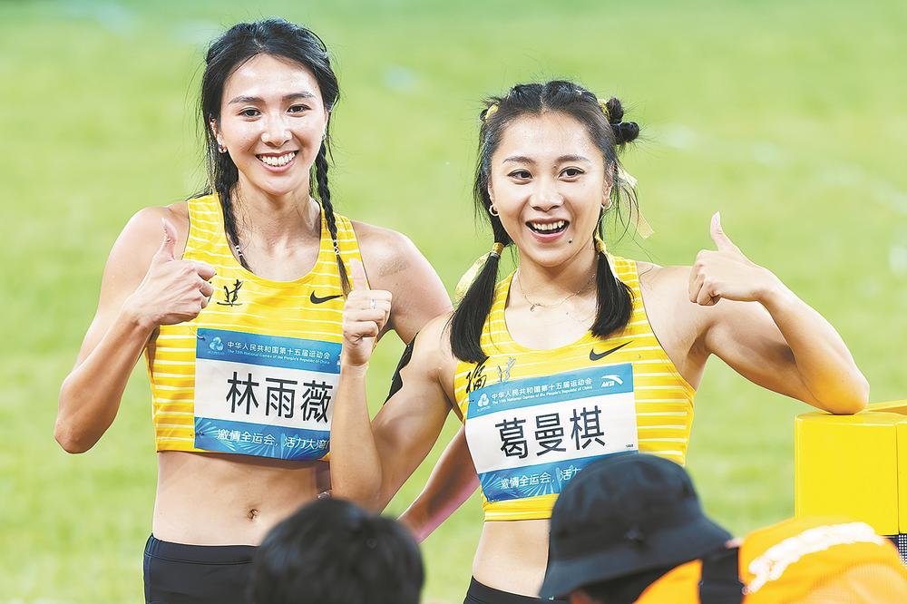 赛后,福建队双姝林雨薇(左)、葛曼棋面对媒体镜头笑靥如花。